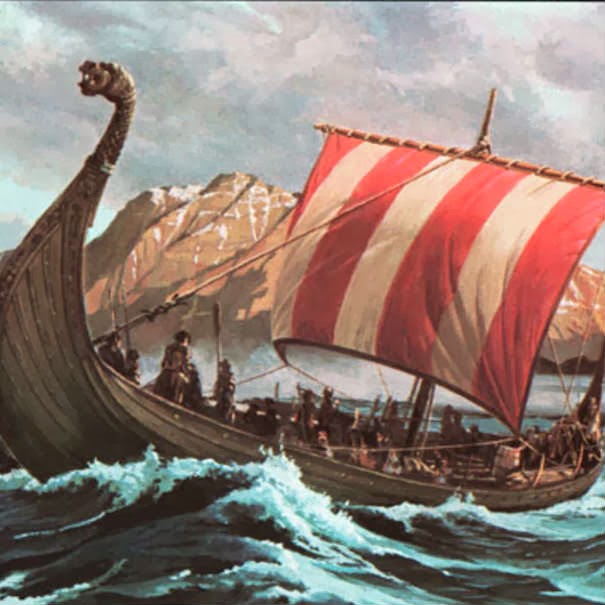 La decoración de las velas de las naves vikingas estaba constituida principalmente por franjas verticales alternas, normalmente rojas contra un fondo amarillo o blanco.